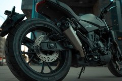 Co do reszty wyposażenia Stratosa, znajdziemy tu wydajne i komfortowe zawieszenie oparte na klasycznym przednim widelcu i świetnie wkomponowanym pod tylną kanapą amortyzatorze centralnym. Hamulce z dużą przednią tarczą o średnicy 330 mm i układem CBS, 17-calowe koła oraz ogumienie firmy CST gwarantują stabilne, pewne i bezpieczne prowadzenie się na każdej drodze oraz możliwość szybkiego wyhamowania maszyny w razie pojawienia się nieprzewidzianej sytuacji. Duży skok zawieszenia daje możliwość zamontowania opon dualowych czy nawet terenowych, przez co przeznaczenie motocykla staje się jeszcze bardziej uniwersalne. Wygodna i szeroka kanapa, położona na wysokości 810 mm, sprawia, że w segmencie 125 jest to bardzo ciekawa propozycja także dla wyższych kierowców.
